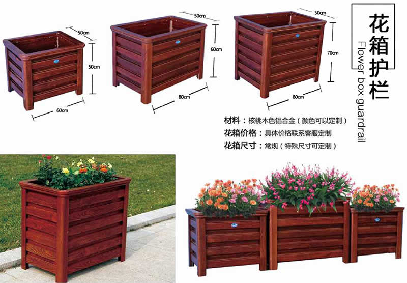 鋁合金花箱采用木紋鋁合金材料,比任何材料輕,更防腐,不發(fā)霉生銹,戶外使用更長久,而且在能源上可以重復(fù)利用的金屬材料。外觀上更具有很高的觀賞性,能顯示出格調(diào)與品位,并從設(shè)計、制造、安裝、檢驗及售后服務(wù)上得到客戶的首肯與喜愛。